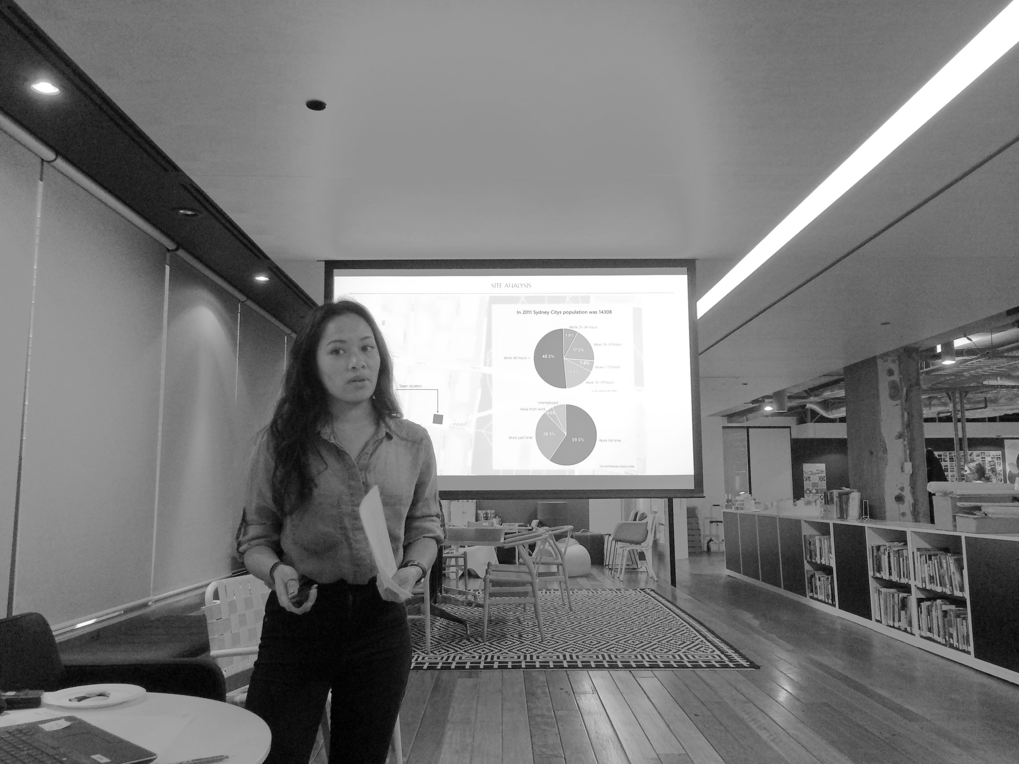 The ‘crit’ at the end of the 5 week program was held in BVN Architects Sydney Studio where the students showcased their work, ideas varied from Stock Market performance driven design to measuring noise values using sensors in real time and designing kinetic adaptive design to mitigate such city problems.