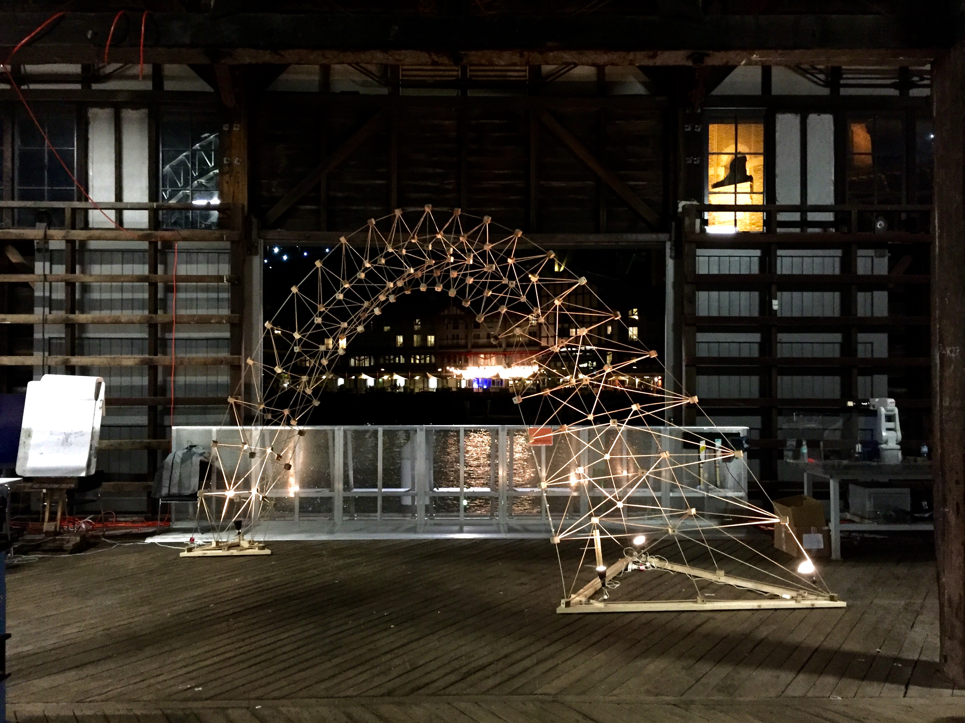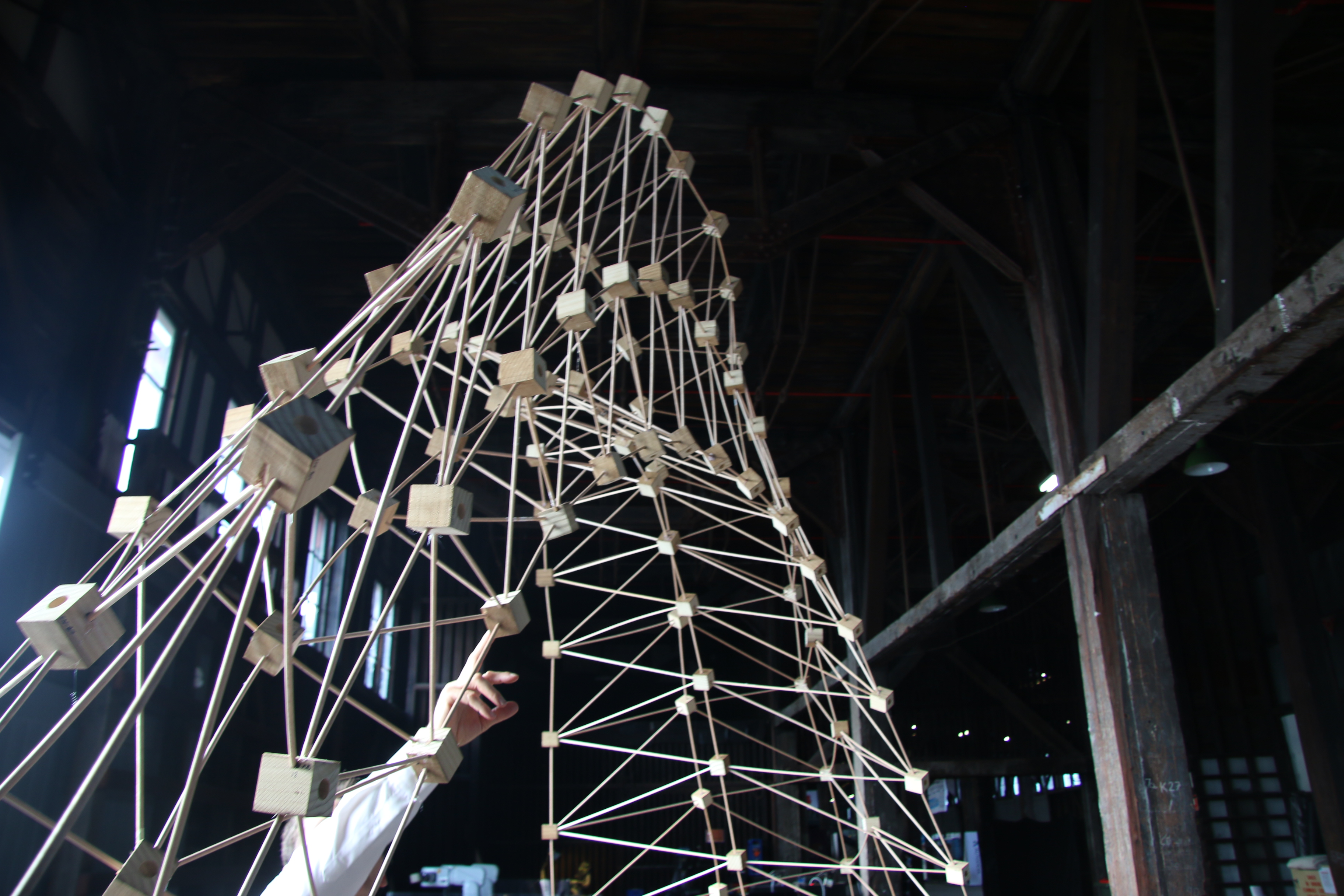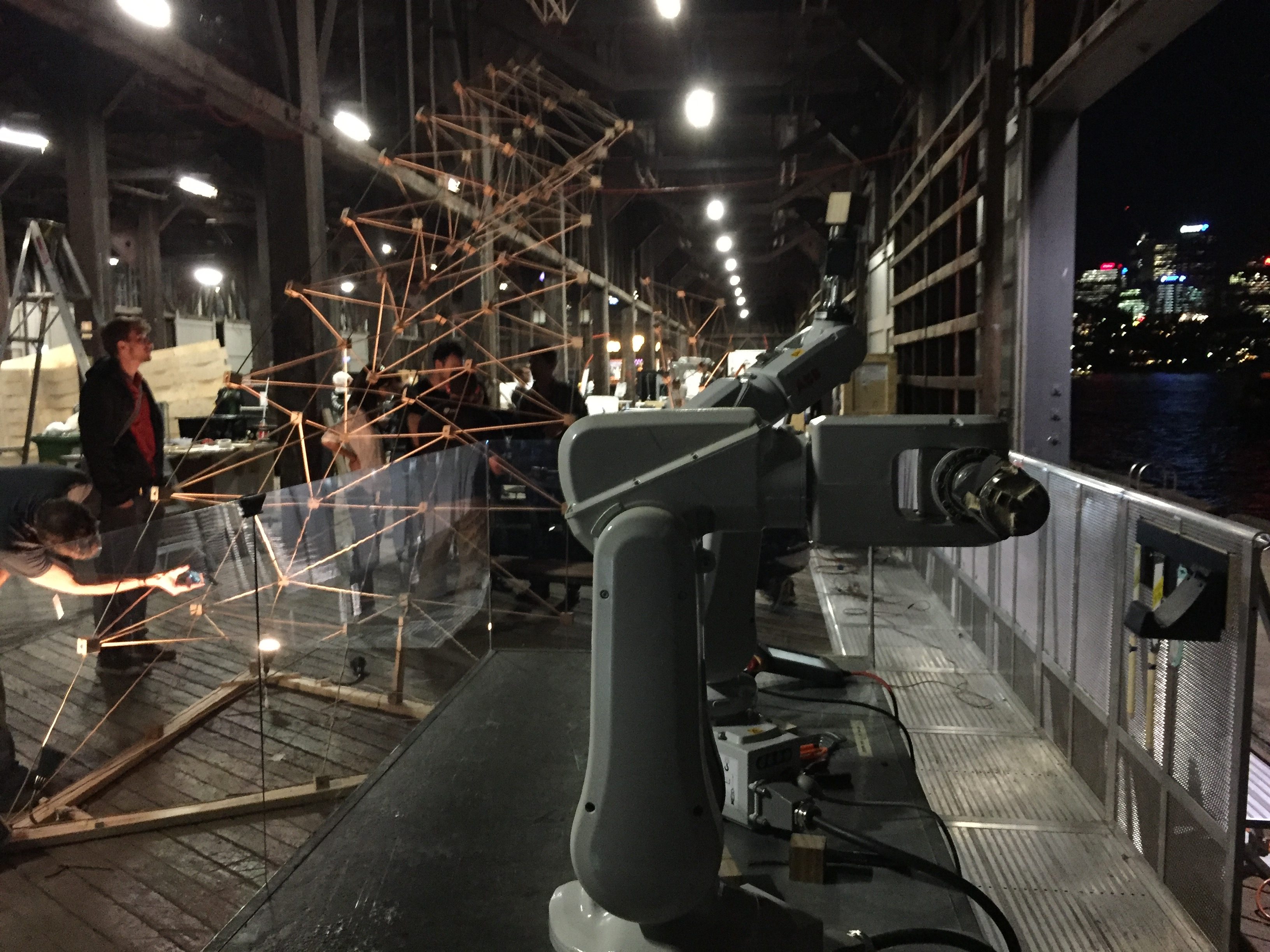 Using a combination of Dynamo, Autodesk React Structures, and the new Dynamo-to-Robot workflow, this workshop explored integrated computational design and structural optimization-to-robotic fabrication workflows to design, evaluate, and fabricate a large format prototypical spatial structure using human-machine collaboration. The Rob|Arch workshop was the first public test of the new Dynamo-to-Robot plugin. This new plugin integrates into the advanced functionality of Dynamo to allow for the visualization of popular types of robots directly in the design environment and for simulation of possible toolpaths and movements.