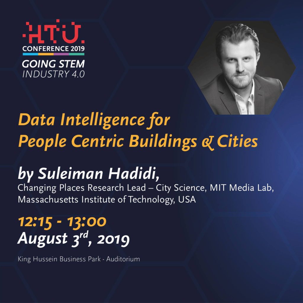 Keynote: Suleiman will be giving a keynote talk at HTU conference 2019 next month in Jordan. He will be talking about the future of buildings and cities from data-driven design and application. This talk will feature the work that he have been involved with at City Science Group -MIT Media Lab and other previous research and practice projects. In his talk, he will project some light on the conference theme STEM 4 and the Jordanian Context. The talk is titled "Data Intelligence for People Centric Buildings and Cities"