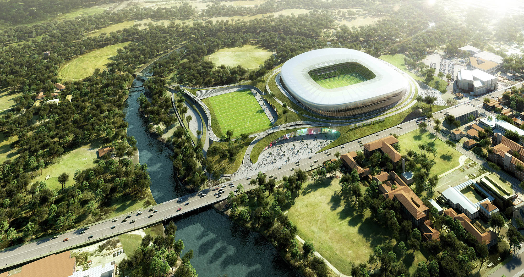 Parramatta Stadium (Westren Sydney Stadium) is a proposal prepared for EOI. The design seeks a visionary response. The design team has prepared a masterplan for the precinct and the stadium which will exceed INSW's vision and objectives. The stadium was proposed to be part of a wider precinct designed to facilitate linkage to the surrounding urban and parkland environments, with other complementary developments facilitated by a seven-days-a-week destination. The stadium which was design computationally aimed for a variety of scalable events providing a truly multipurpose venue that supports the community across a number of levels.