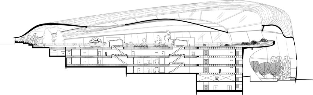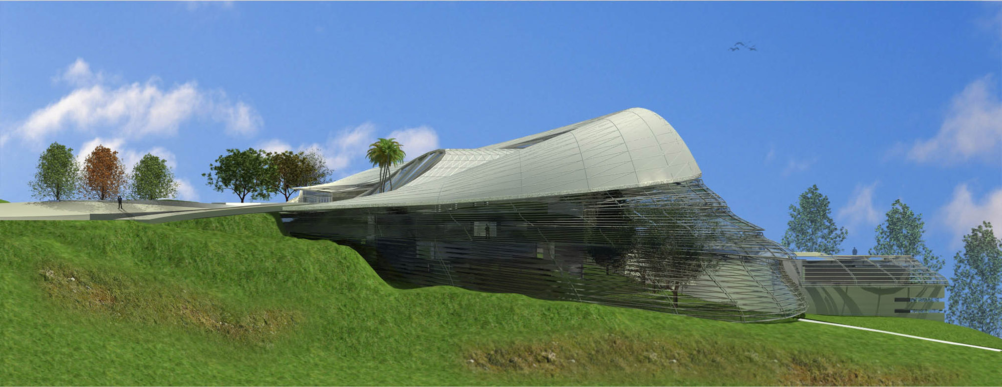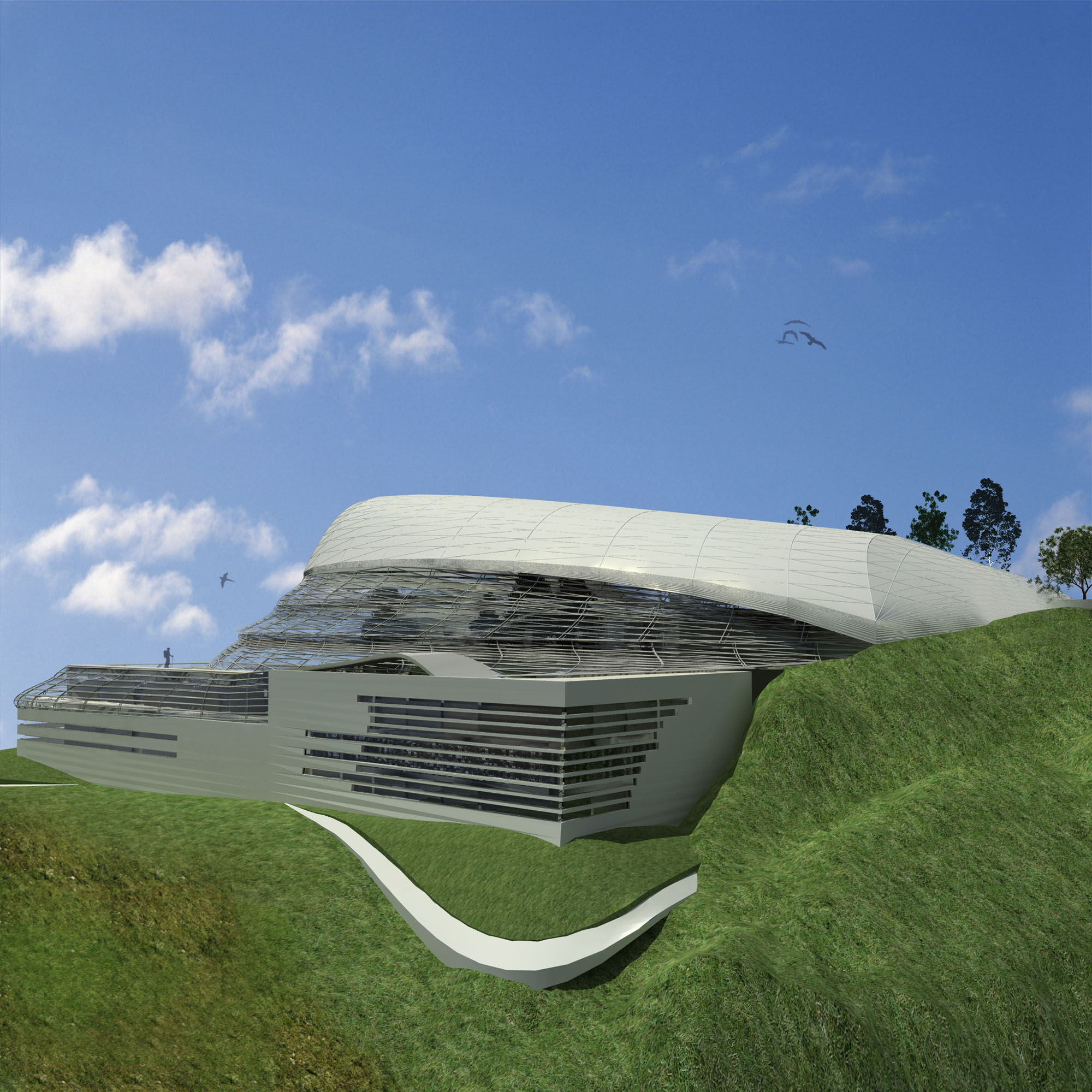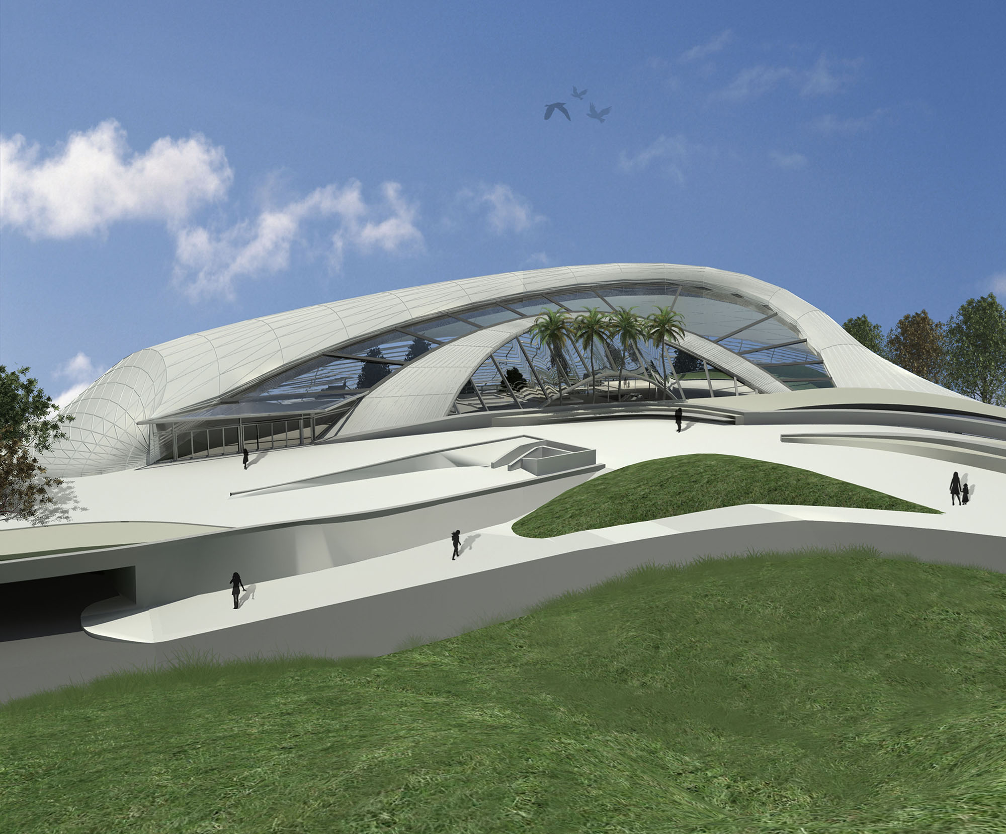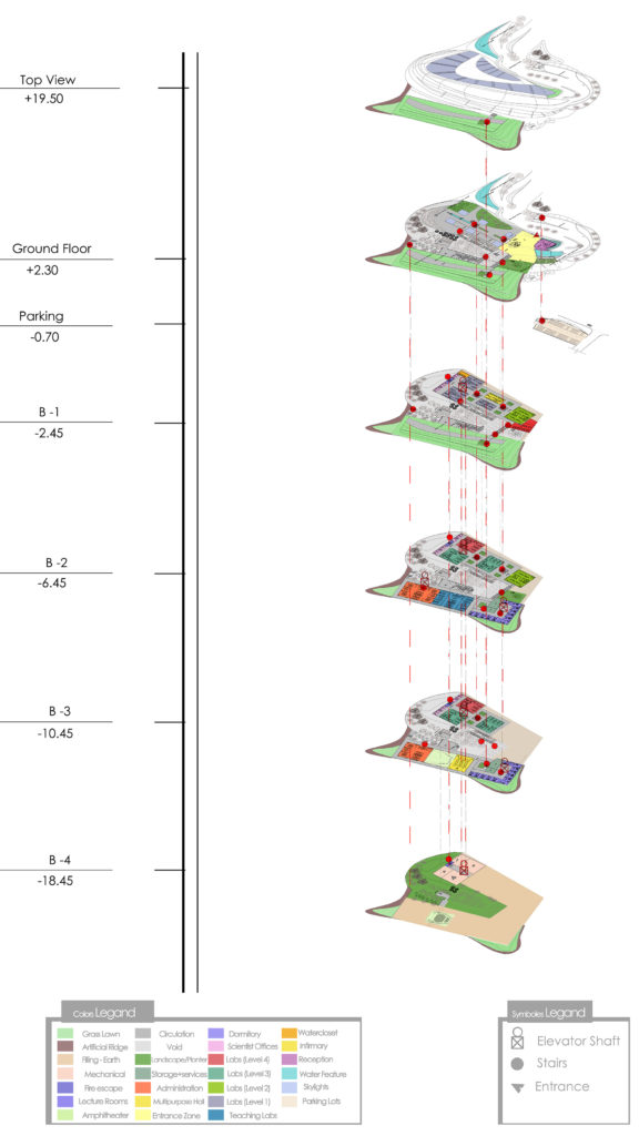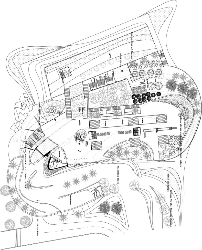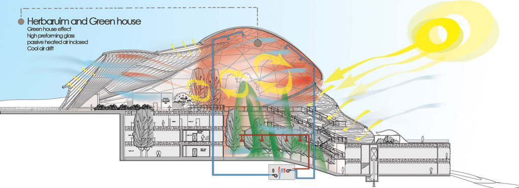 The typology of this project was based on its functional importance which revolves around the herbarium and the biological laboratories which need an efficient and safe space , the main massing of the project was the result of the natural topography and its soft landscaping . The whole building is generated by the herbarium as the main mass while the administration and teaching quarters generate the back facade, the biological laboratories are hidden in the back underground that is to provide them with safe and efficient environment, these laboratories will have a special hi-tech DNA storage facilities that will work as a DNA bank for the botanical heritage of the region.